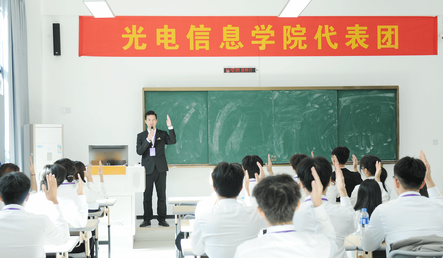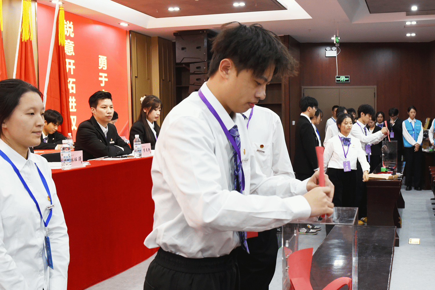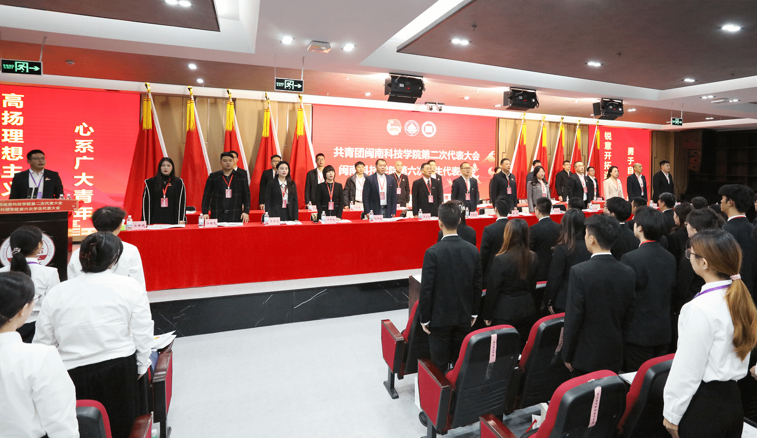 12月14日,共青团闽南科技学院第二次代表大会暨闽南科技学院第六次学生代表大会在康美校区图书馆学术报告厅隆重举行。校党委书记李旭、泉州团市委副书记何培旭出席会议并致辞。校长袁自煌、校党委副书记林树生,校长助理刘武强,南安团市委副书记杨雯清,黎明职业大学、仰恩大学、泉州信息工程学院、泉州职业技术大学、闽南理工学院、泉州海洋职业学院、泉州工艺美术职业学院等兄弟高校团学组织代表,以及校党委组织部、宣传部、学生工作部等有关职能部门负责人,各学院党组织书记出席开幕式,131名团代会代表、161名学代会代表参加会议。