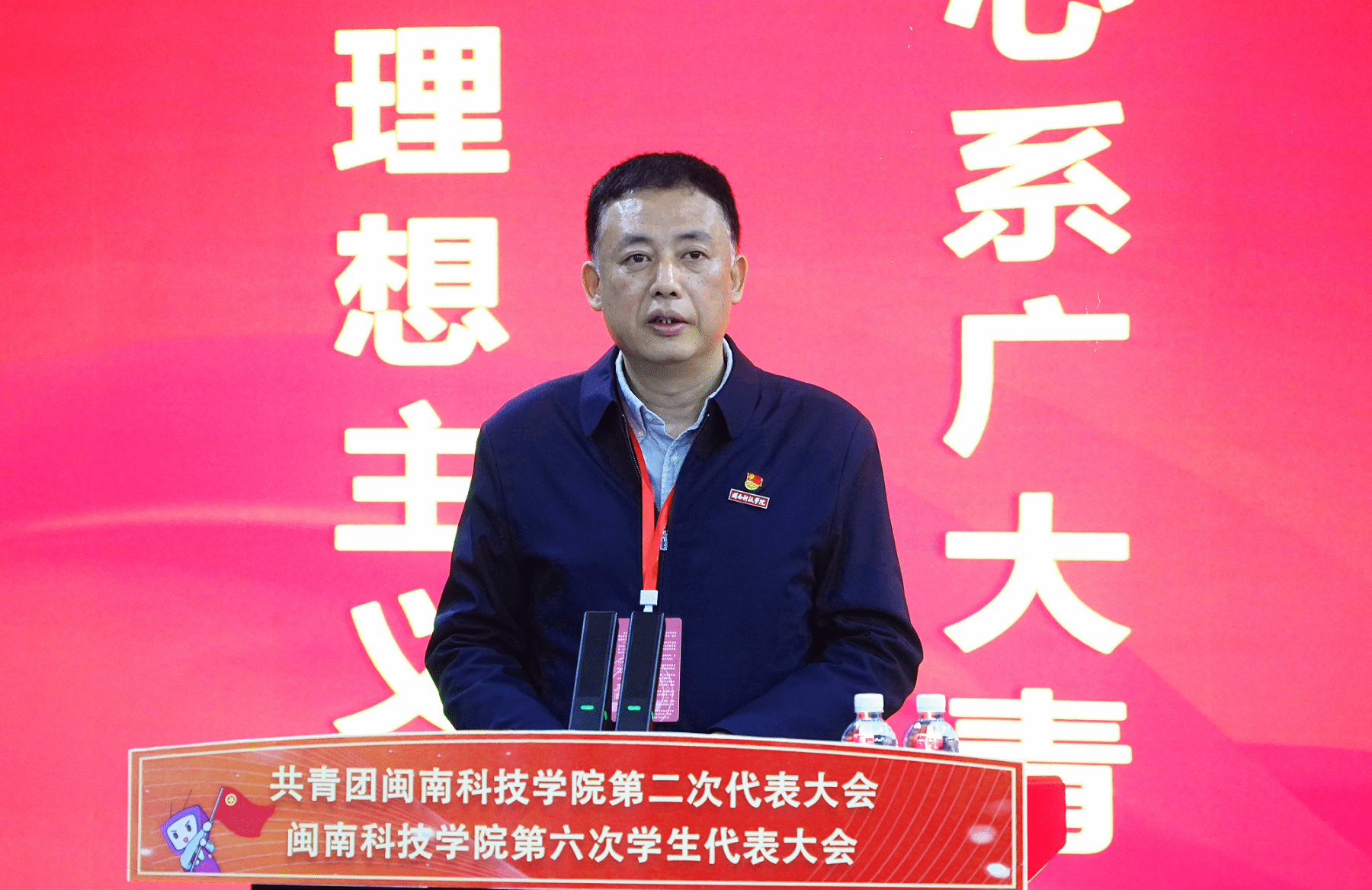 何培旭代表共青团泉州市委、泉州市学联对大会召开致以热烈祝贺,对我校近年来的团学工作给予充分肯定,对今后团学工作提出四点希望与要求:一要坚守政治本色,在引领凝聚青年上展现新作为;二要紧扣服务大局,在组织动员青年上作出新贡献;三要心系广大青年,在联系服务青年上取得新成效;四要锐意改革创新,在加强自身建设上实现新突破。