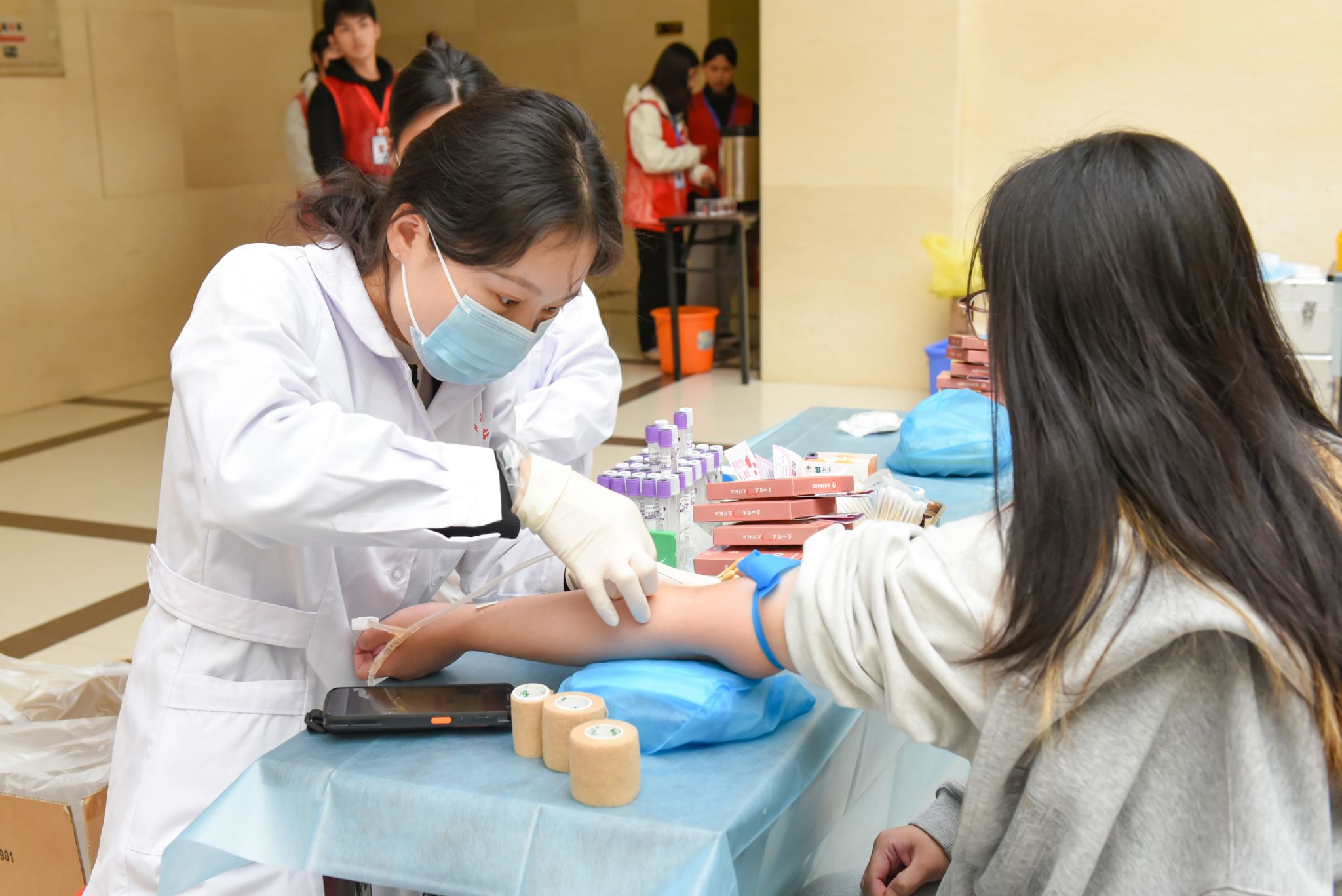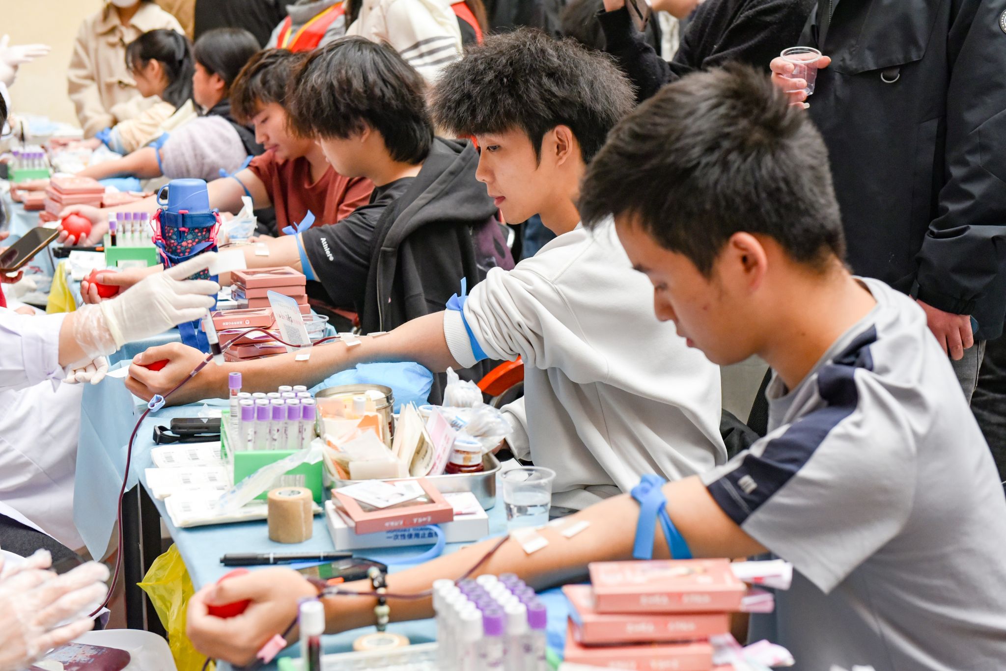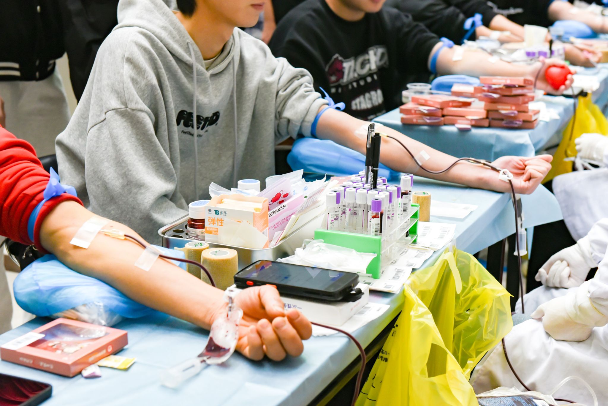 活动现场热烈有序,志愿者提供献血咨询、信息录入、体检采血全流程贴心服务,各环节衔接流畅。医护团队专业严谨开展采血工作,现场配备暖心茶点、休息座椅与应急物资等。据统计,本次活动共有441名师生成功献血,总献血量突破12.4950万毫升,师生们用行动诠释公益精神,点滴热血凝聚成温暖生命的爱心洪流。