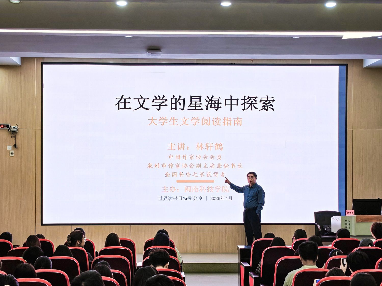 4月22日,中国作家协会会员、泉州市作家协会副主席兼秘书长、全国“书香之家”获得者林轩鹤应邀莅临我校,作题为《在文学的星海中探索——大学生文学阅读指南》的专题讲座。我校170余名师生代表齐聚现场,共赴一场文学与阅读的盛宴。