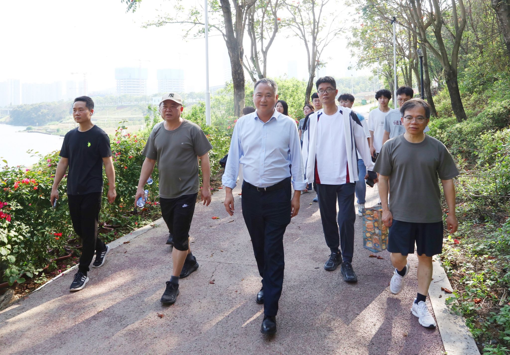 4月26日,校工会组织开展第五届教职工健步走活动。执行校长周勇军、校党委副书记林树生参加活动。