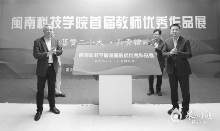 南安市委副书记、市纪委书记、市监委主任林添盛,南安市委宣传部常务副部长吴亚明,闽南科技学院党委书记李旭,闽南科技学院艺术设计学院院长徐俊东共同为展览揭幕。