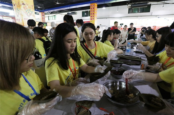 日前,2019年第二届东南亚金门籍青少年祖地行——泉州海丝之旅走进闽南科技学院。30余名来自马来西亚、文莱等地的金门籍青少年和闽科师生共同体验端午节传统民俗,动手包起了粽子。