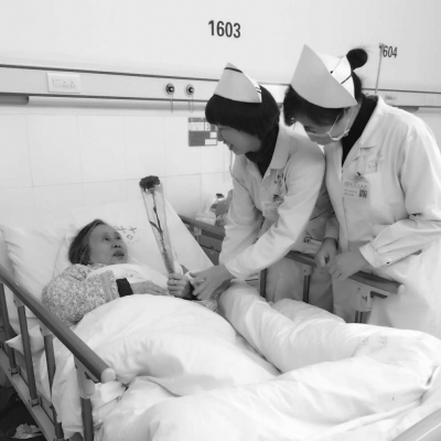 市医院医护人员为患者送花,打造暖心服务。
