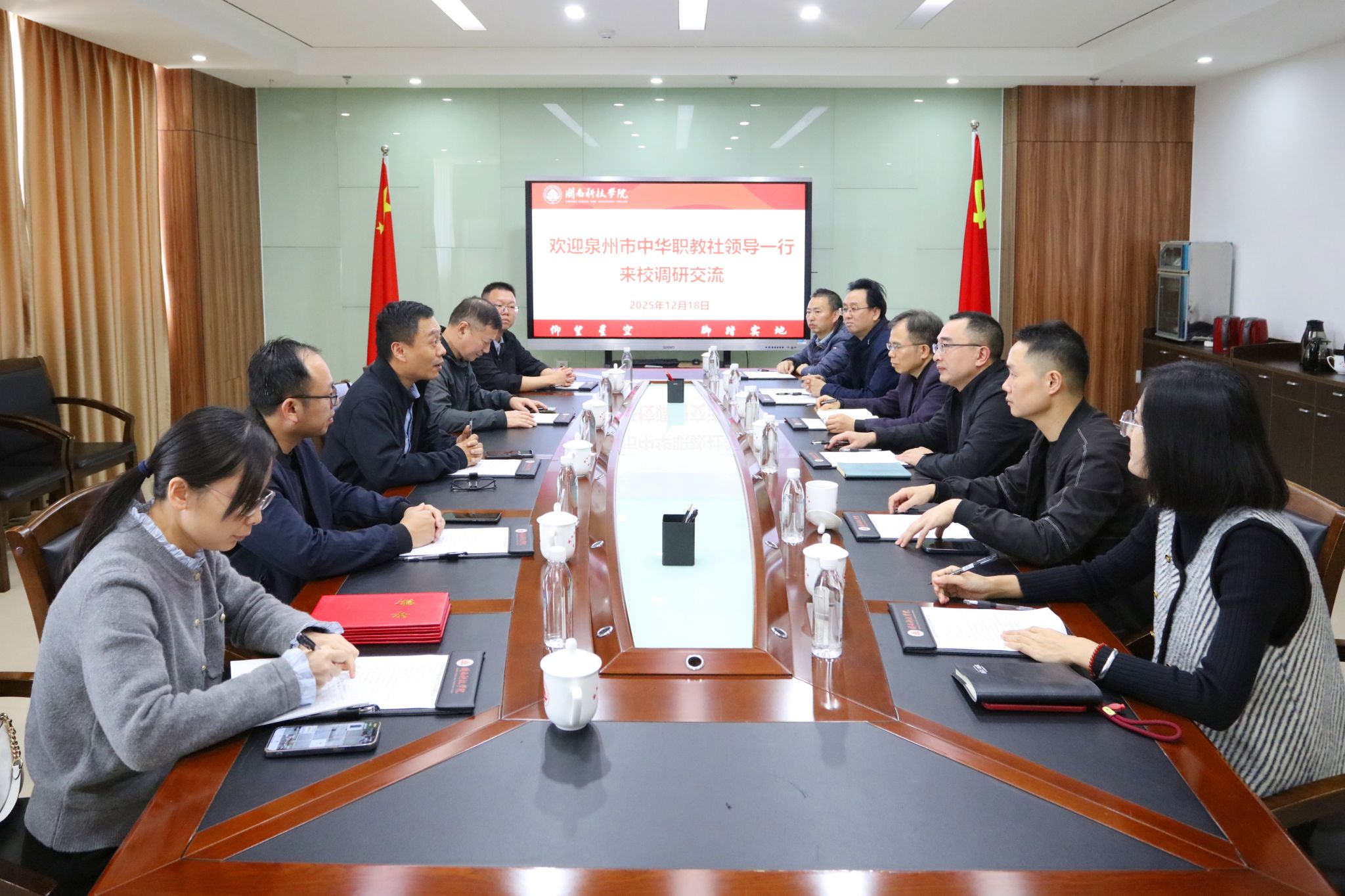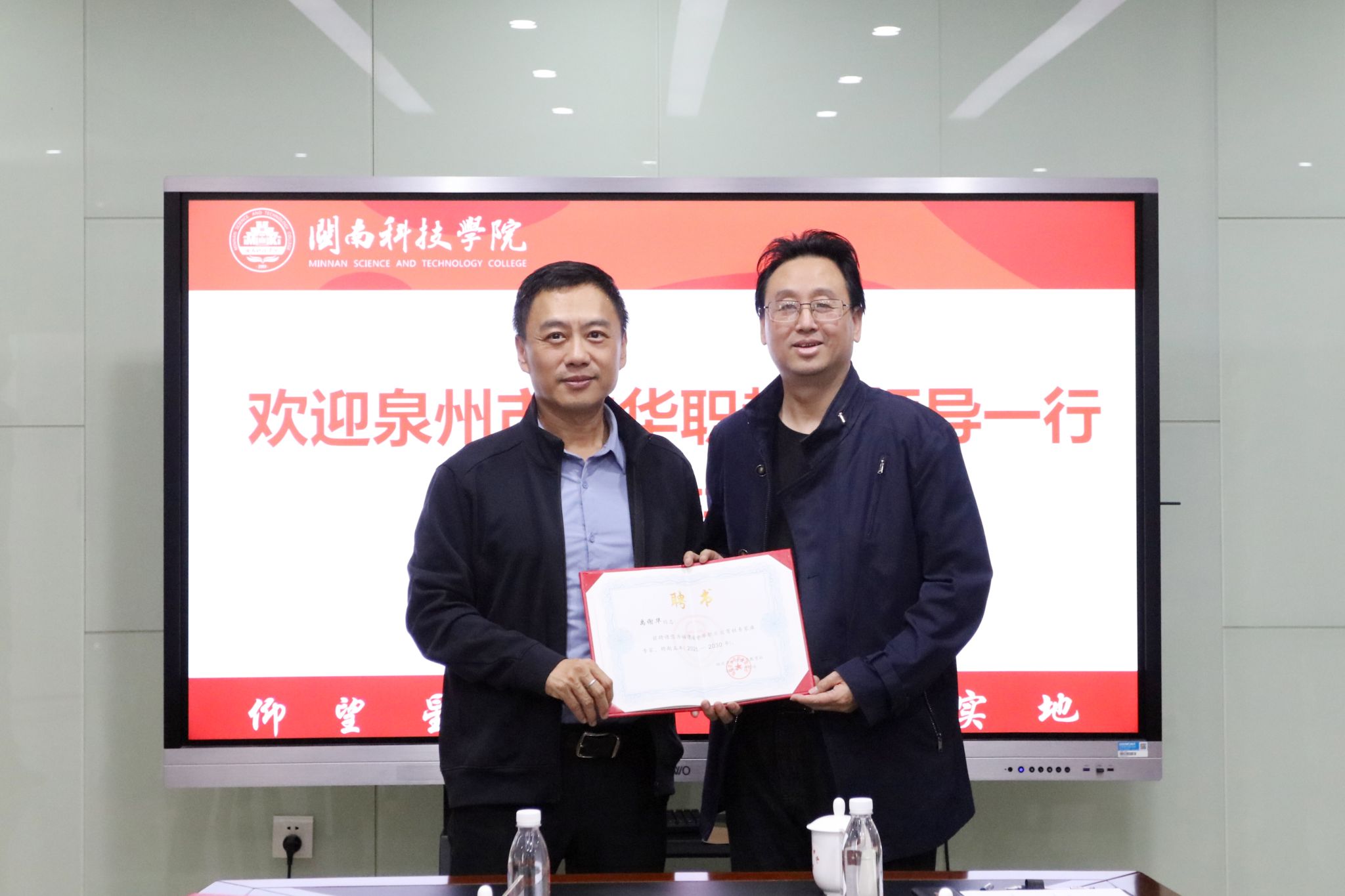 12月18日,泉州市中华职业教育社专职副主任、三级调研员卓晨雷一行在南安市委统战部常务副部长黄文金、副部长陈鸿杰,南安市康美镇党委秘书、统战委员李晓明等陪同下莅临我校,开展党建和思政工作调研,为省中华职业教育社专家库专家颁发聘书。校长助理刘武强、相关职能部门负责人参加调研并座谈。