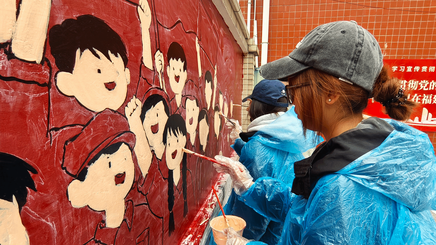 在露江村委,实践队以“执青春之笔,‘绘’就乡村振兴新画卷”主题,聚焦“党建文化”“社会主义核心价值观”“中华优秀传统文化”“反腐倡廉”内容,以110余平方米墙面为载体,运用漫画、标语、传统纹样等艺术形式,将文明新风、廉洁理念、党建精神融入乡村景观。原本朴素的墙面焕然一新,成为传播正能量、涵养乡风民风的文化阵地,吸引不少村民驻足观看、打卡留念。