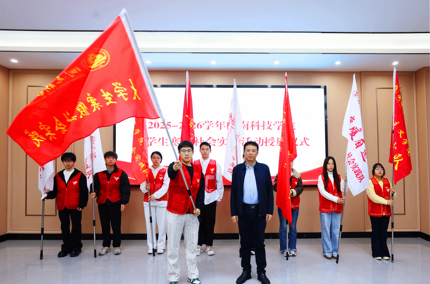 校党委书记李旭为2025-2026学年寒假大学生社会实践活动授旗