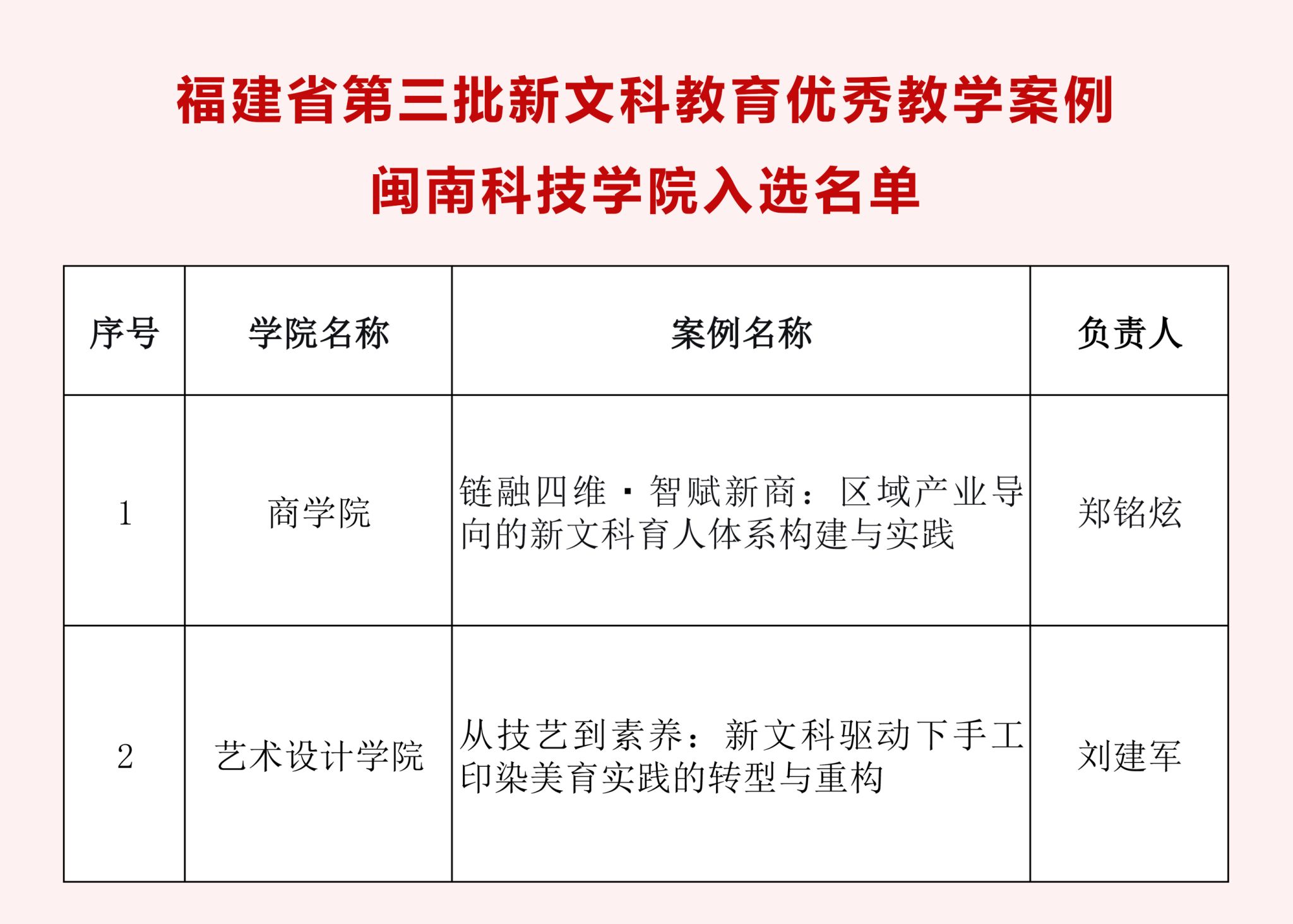 近日,福建省新文科教育研究中心公布了第三批新文科教育优秀教学案例入选名单,我校2项案例成功入选。