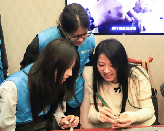 在非遗馆黄雪玲工作室,队员们通过第四代木偶头雕刻传承人黄雪玲了解到一个木偶头需经27道工序、耗时一周甚至更久才能完成,大家对“宁慢勿急”的匠人精神深有感触,还亲手体验基础雕刻,感受传统技艺的严谨与温度。黄老师“守好传统、交给青年”的质朴话语,让队员们读懂了非遗传承的坚守。