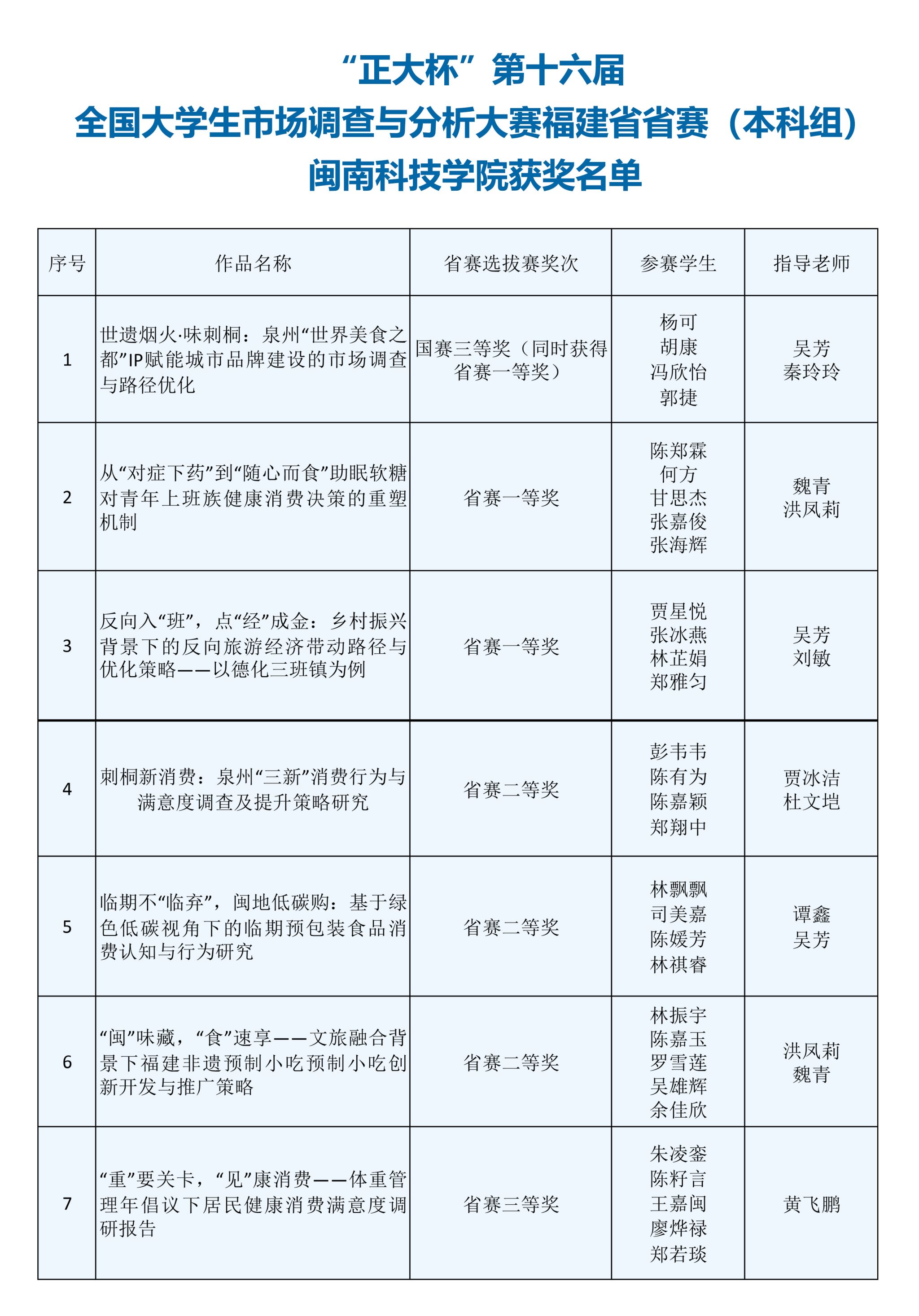 近日,“正大杯”第十六届全国大学生市场调查与分析大赛福建省本科组线上赛获奖结果公布。我校学子奋勇拼搏、表现突出,共获得国赛三等奖1项、省赛一等奖2项、二等奖3项、三等奖1项的好成绩,充分展现了我校学子扎实的专业素养、突出的实践能力与良好的团队协作精神。