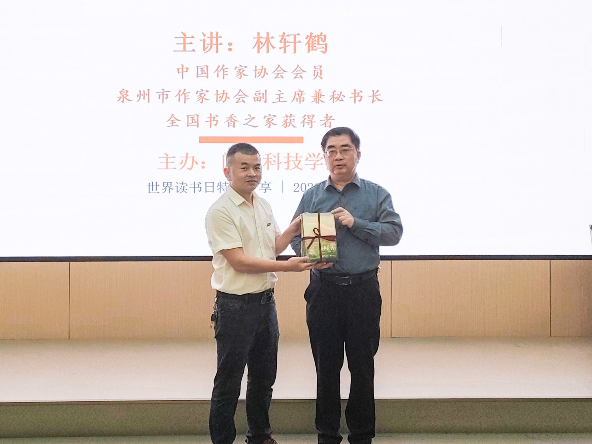 讲座后,林轩鹤老师还将个人著作《泉州传》赠予我校图书馆和现场同学们,希望以本土文学作品传承书香文脉,激励更多的同学热爱经典文学、传承优秀文化。