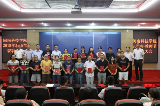 学院党委常务副书记林明旭宣读《院长嘉奖令》,副院长周勇军宣读《福建师范大学闽南科技学院2017-2018学年获得各级各类荣誉称号的先进集体和先进个人名单》,副院长吴勇宣读《福建师范大学闽南科技学院2017-2018学年教育教学、科研表彰名单》。与会领导为获奖的先进集体和先进个人颁奖并合影留念。
