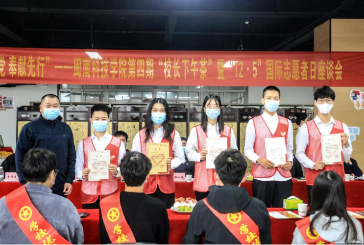 12月2日下午,校团委举办第四期“校长下午茶”暨“12.5”国际志愿者日座谈会,校长游小波、校党委副书记林树生,学生工作处、校团委班子及青年志愿者代表参加活动。
